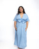 A soft and airy maxi dress adorned with 3D petal appliqués around the waistline — a true statement of effortless grace. Designed with tie-up sleeves and a plunging neckline for a romantic, flattering look.