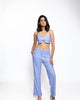 A sleek and playful co-ord in a serene periwinkle tone. The cropped bustier top with a signature front cut-out pairs effortlessly with straight-fit trousers, making it your go-to look for day-to-night dressing.